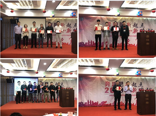 年度工作報告結(jié)束后,激動人心的時刻到來了,胡總、吳總等公司高層領(lǐng)導(dǎo)為獲得"年度優(yōu)秀管理者獎"、"年度優(yōu)秀宏森人獎"、"年度銷售團(tuán)隊(duì)冠軍獎"、"優(yōu)秀員工獎"、"榮譽(yù)職工代表者獎"等獲獎?wù)哳C發(fā)了相應(yīng)的獎金與獎狀。